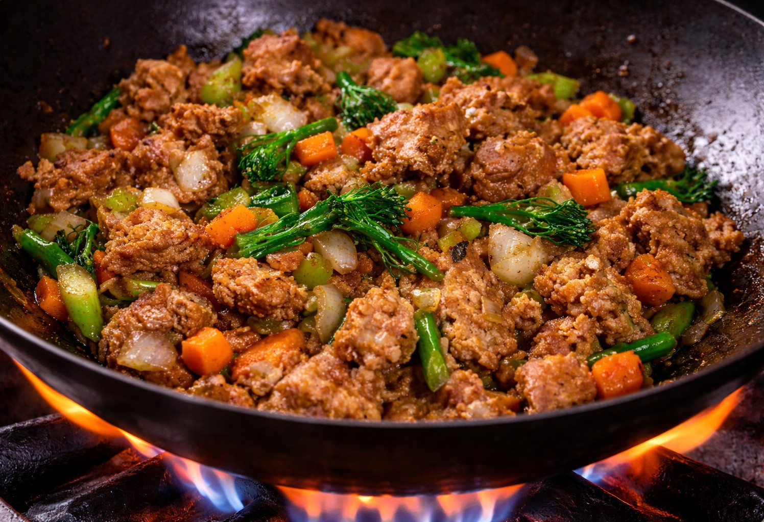 It’s really a giant pork burger chopped into pieces and braised in an oriental style sauce. All it needs is some fried or boiled rice to make a filling mid week meal.