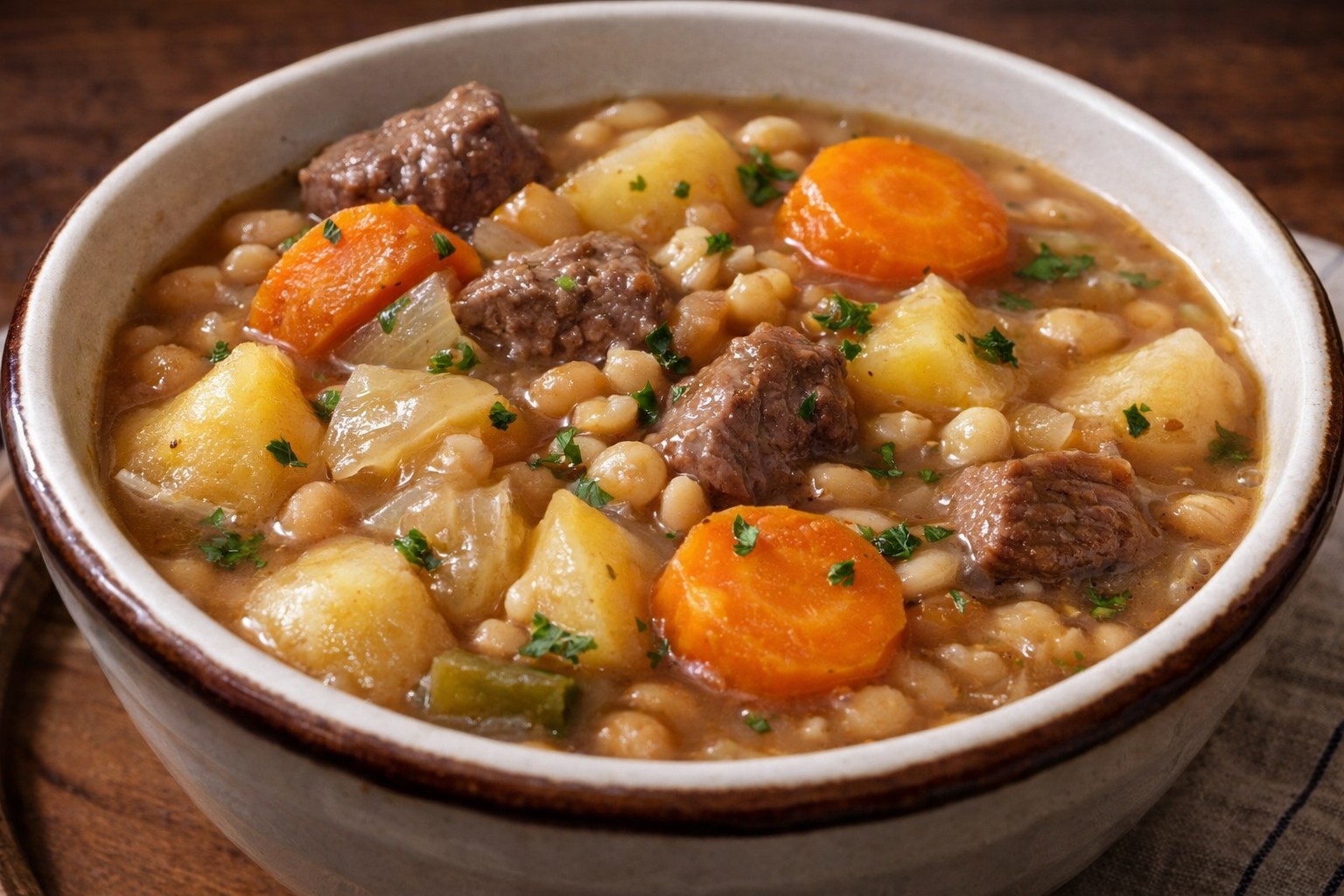 It was a working class dish, little more than a potato and water stew, to which a few cheap cuts of lamb or mutton, carrots and onion were added. The whole thing was cooked slowly to tenderise the tough meat and was thickened by the potatoes.
