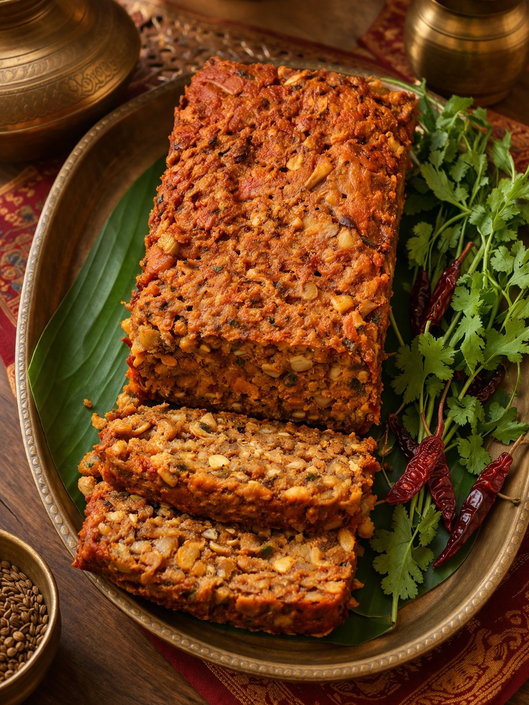 Spiced lentil, nut and vegetable roast
