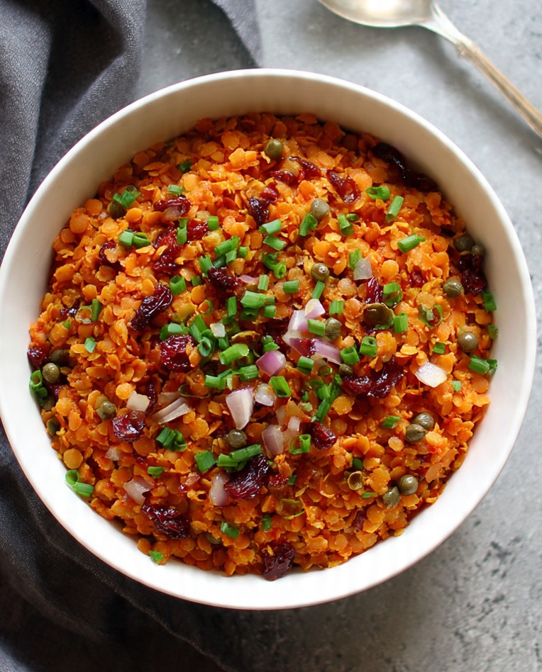 Lentils make such wonderful side salads as they absorb flavours so well.