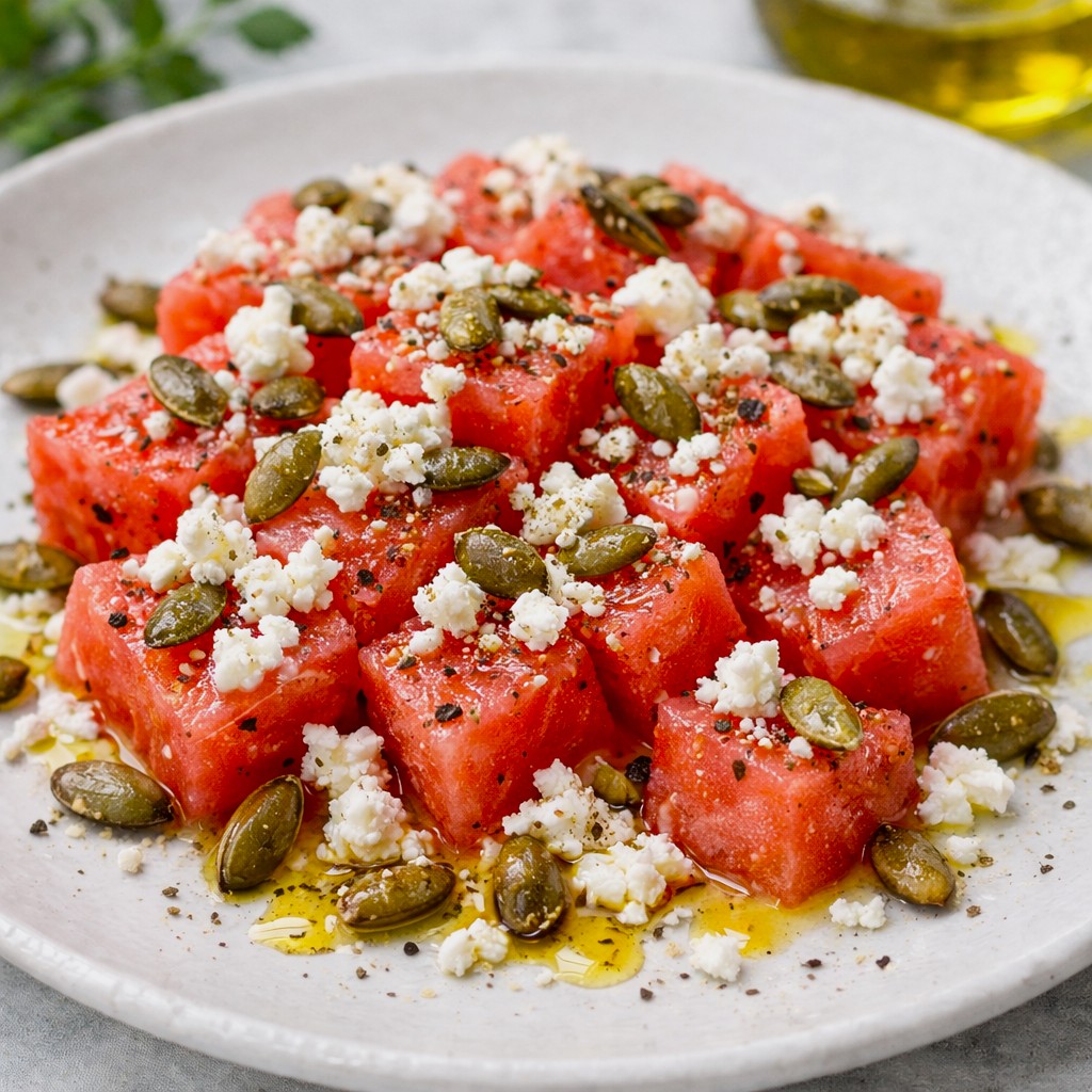 WATER MELON, FETA AND PUMPKIN SEED SALAD